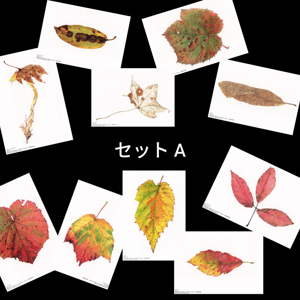 Aセット(10枚):モミジ・カラマツ、オオバヤナギ㋐、イタヤカエデ㋐、ヤマブドウ㋐、ホオノキ㋐、ヤマブドウい、ウリハダカエデ㋐、シラカバ、コナラ、メグスリノキ